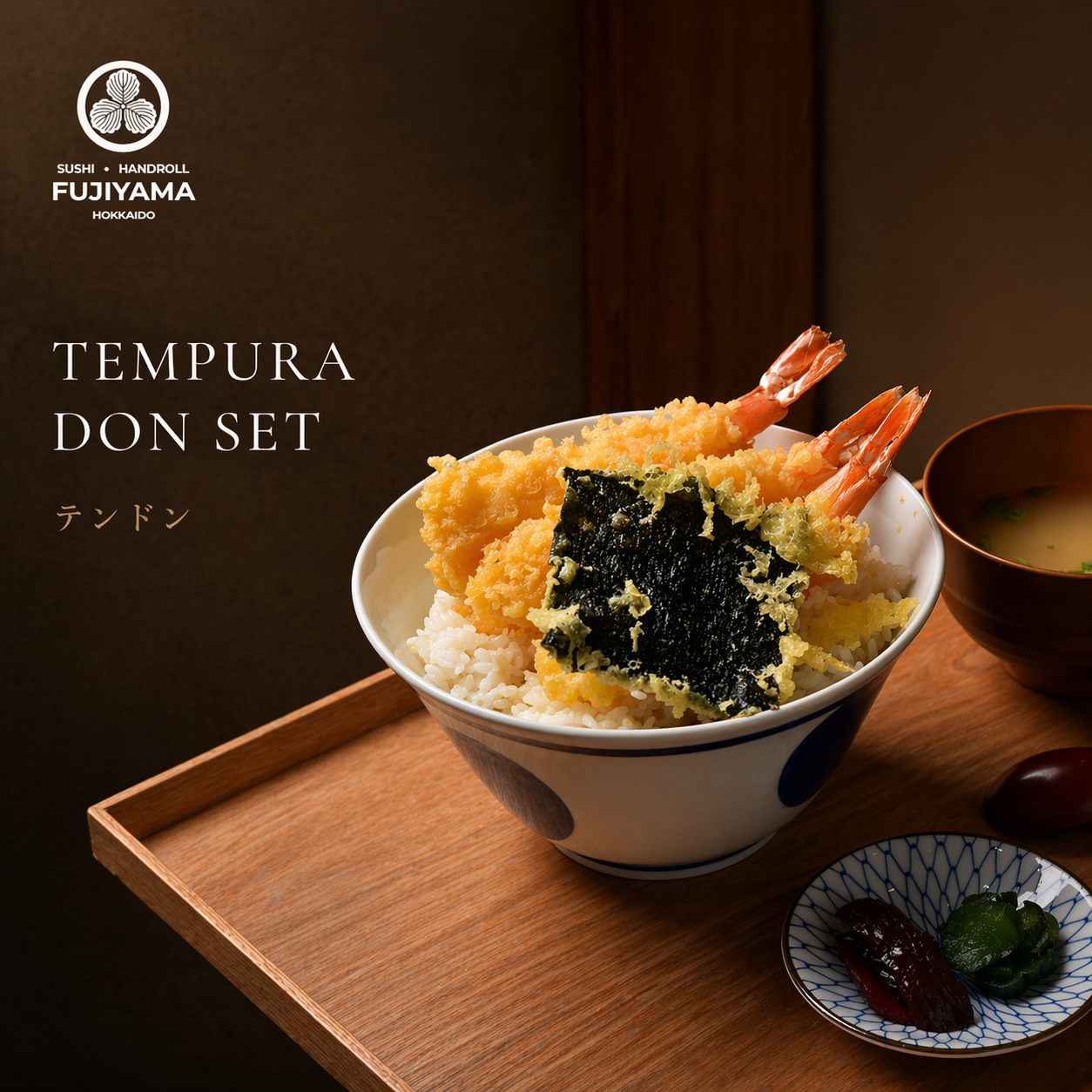 Crisp shrimp and seasonal tempura, lightly fried and served over Hokkaido Japanese rice.